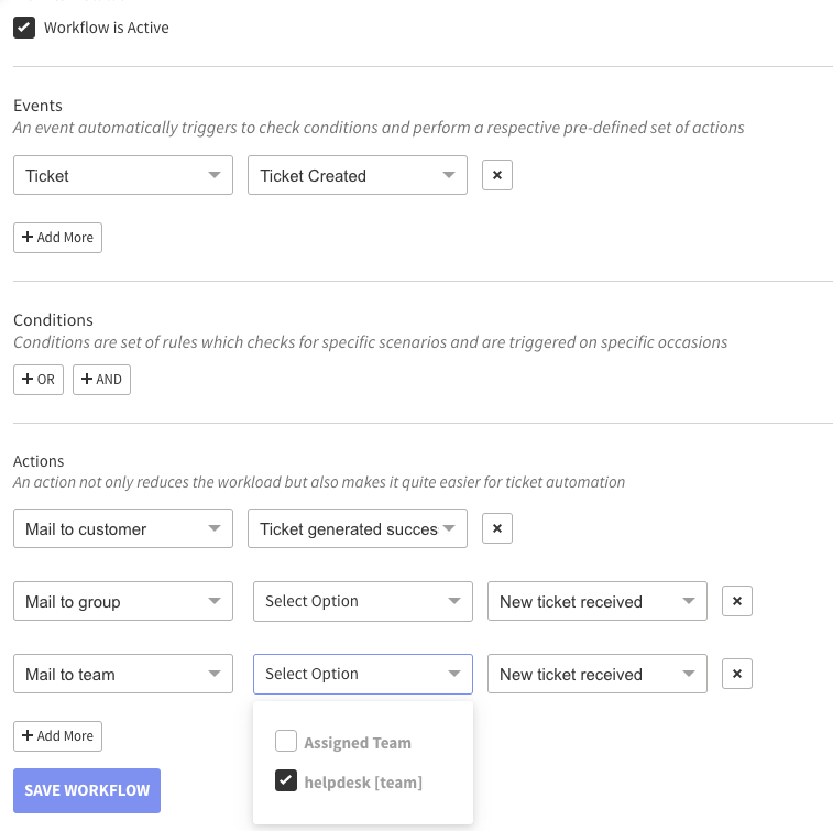 • Workflow [create ticket] doesnt sent to agent and/or team and/or group.