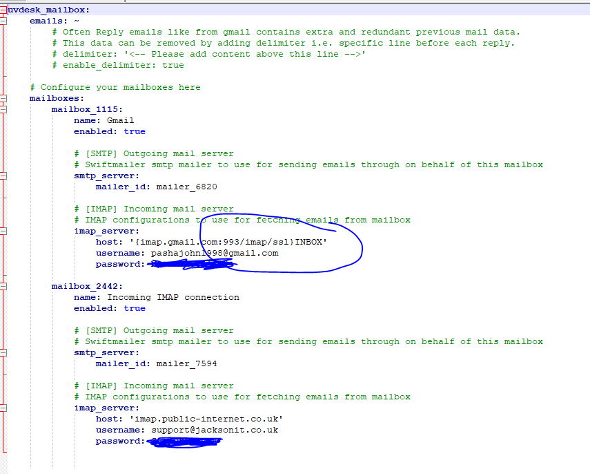 uvdesk_mailbox.yaml shows the correct password, although doesn't show port number or SSL enabled for the corporate IMAP account, should this be added manually?